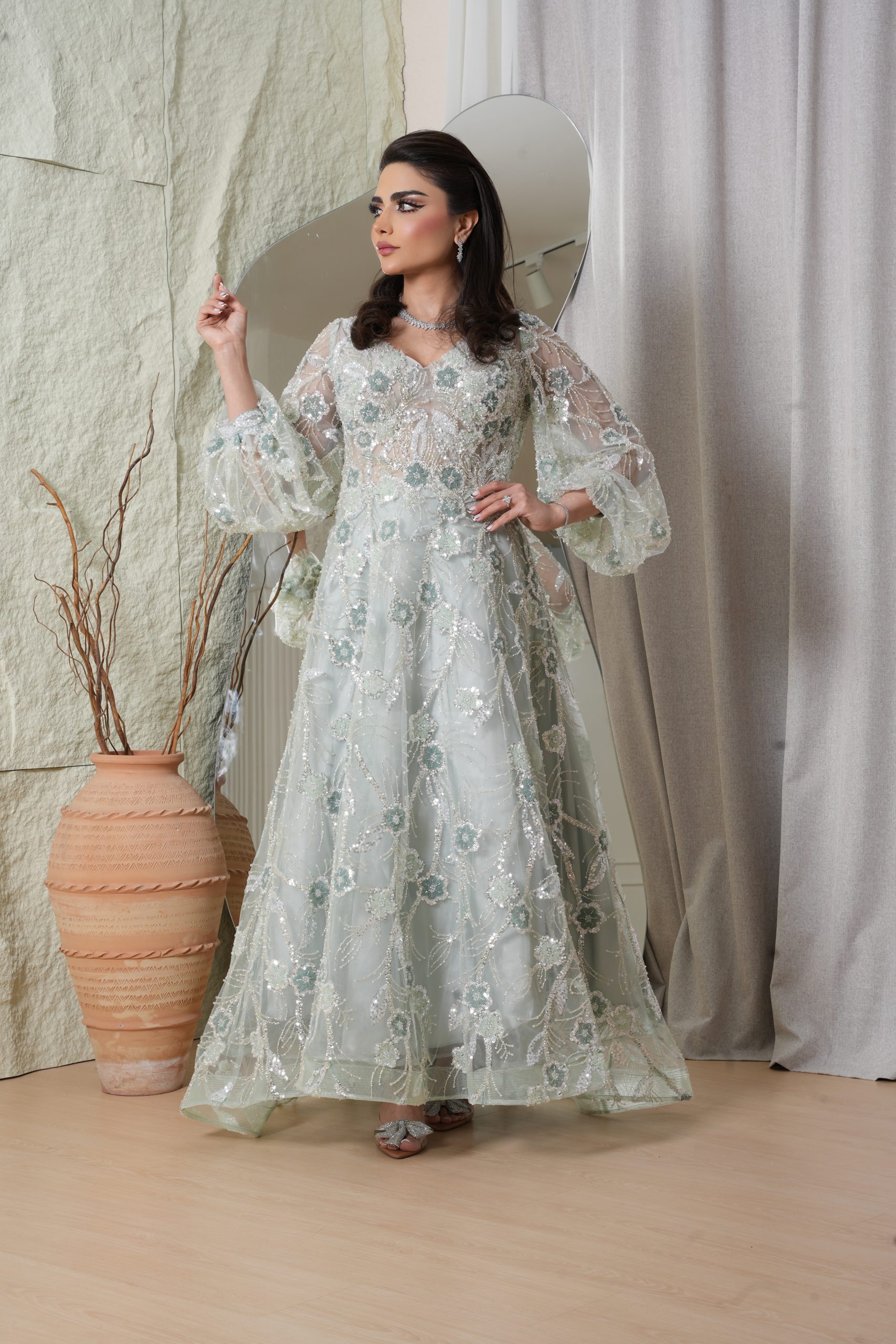 Day based pricing : فستان اخضر فاتح تور ورد